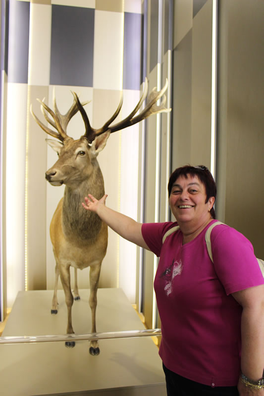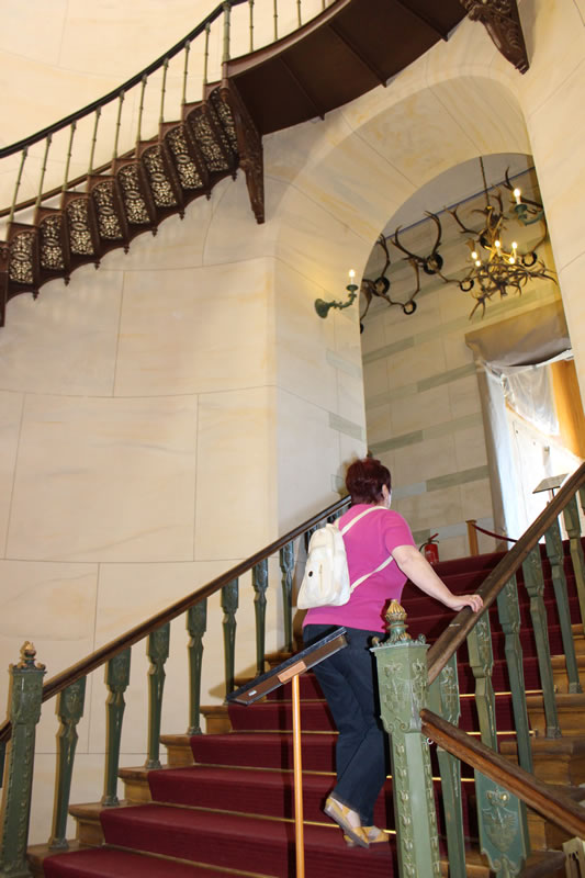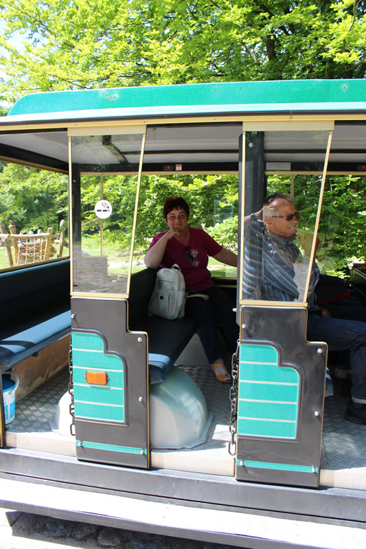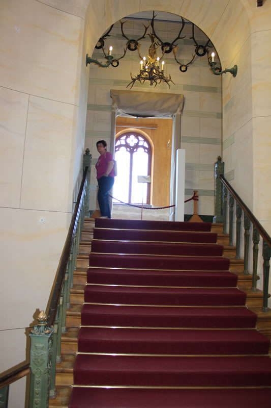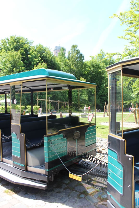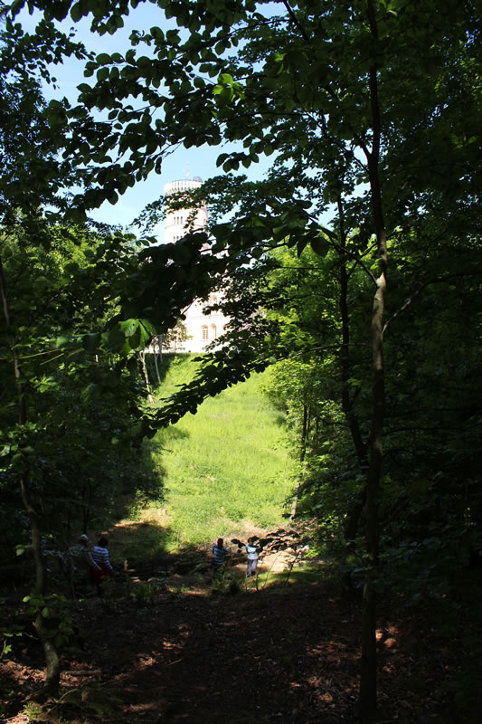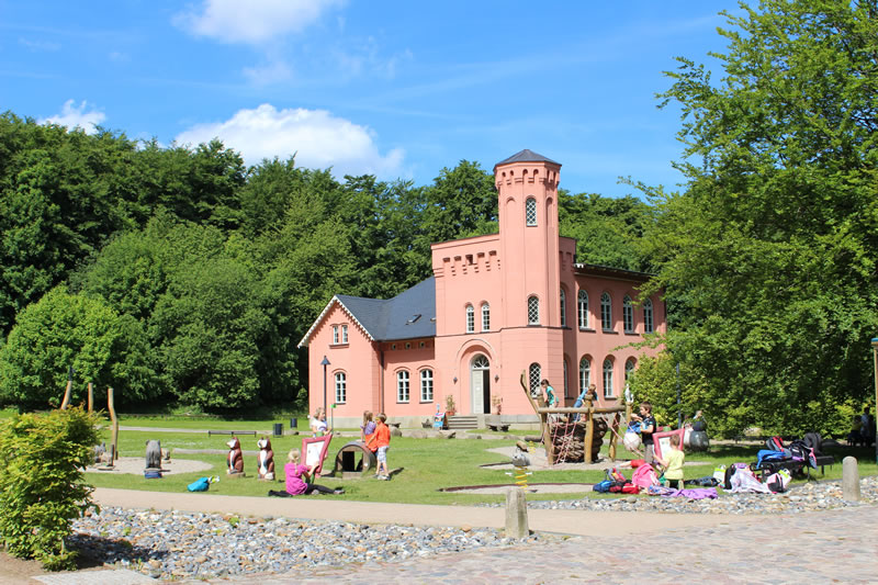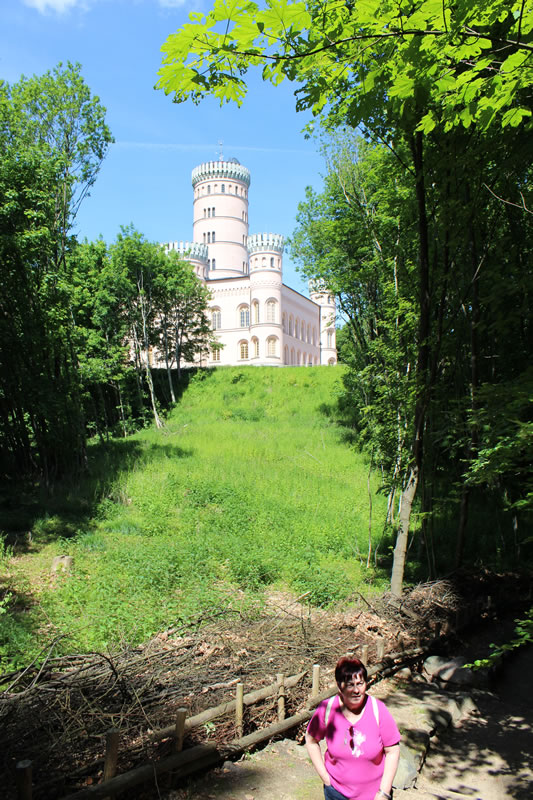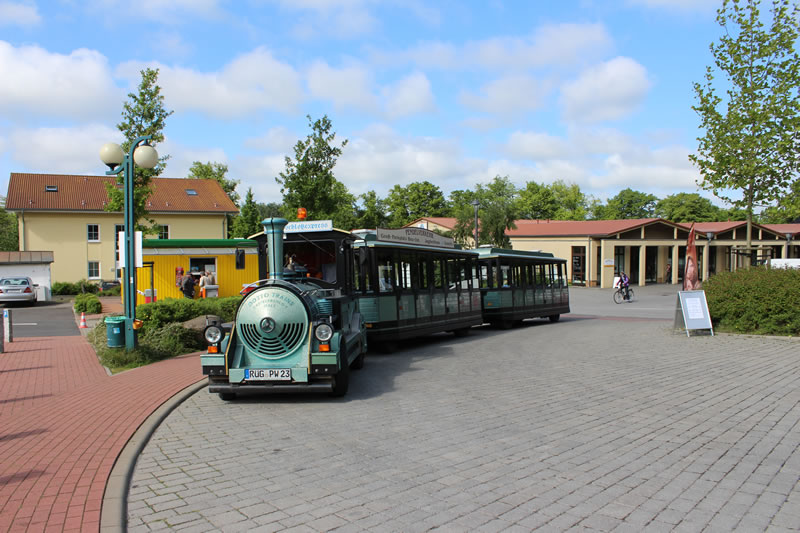 Gibt dafür eigens eine Bahn welche an der Seebrücke oder Nähe Kleinbahnhof am Parkplatz Supermarkt startet. Kostet natürlich. Gibt aber am Supermarkt auch einen eigenen Parkplatz. Ansonsten geht es nur mit Fahrad , zu Fuss oder mit dem Pferdegespann zum Jagdschloss. Der von Karl Friedrich Schinkel mit dem Turm ergänzte Bau beindruckt besonders mit gusseiserner Wendeltreppe mit 154 Stufen im Mittelturm. Vom Turm hat man den Panoramablick über die Insel. www.granitz-jagdschloss.de