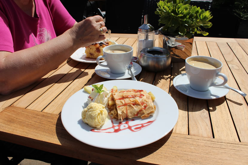 Ein lecker Café und Apfelstrudel am Yacht Hafen das geht auch. Ein Besuch der Festspiele war nicht möglich