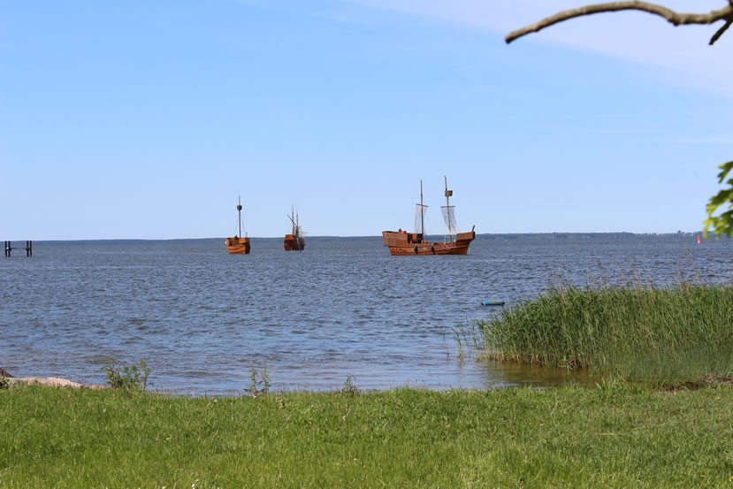 die fangen in diesem Jahr erst am 21. Juni mit der Spielzeit an. Gab aber die Probe der Hanse Koggen zu sehen.