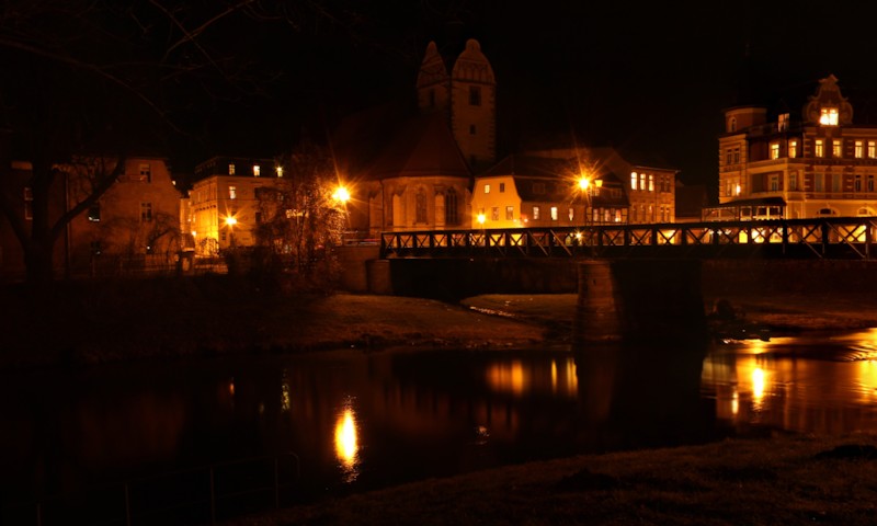 5. Januar 2014 Untermhaus Gera Blick über die Elster in der Nacht.